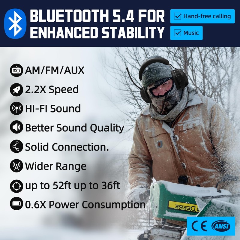 - LEADING BLUETOOTH 5.3&PREMIUM SOUND QUALITY: No longer worry about the sudden music drop-outs. Upgraded Bluetooth 5.3 technology provides a quick and stable Bluetooth connection and lets you seamlessly stream entertainment from your phones, tablet, or other Bluetooth enabled devices. The multifunctional button&integrated microphone allows you easy to make calls without removing the earmuff. Plus, Hi-Fi speakers will give you a brilliant music experience without compromising hearing protection