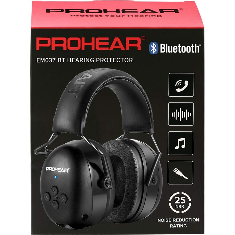 PROHEAR 037 Wireless Bluetooth Ear Defenders, Rechargeable Hands-Free Calling Headset, Safety Earmuffs for Lawn Mowing, Hearing Protector for Woodworking, Carpenter, Gardener(Black)
