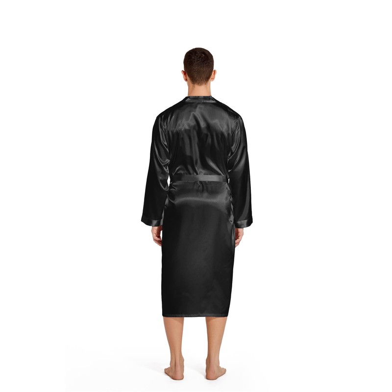 Prohonbec Men's Satin Kimono Robe with 2 Pockets, Men's Bathrobes for Wedding Spa Robe Sleepwear Party Nightgown Dailywear