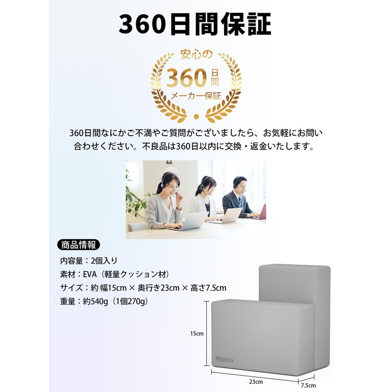 PROIRON Yoga Blocks, Set of 2, Stretch Blocks, Yoga Blocks, High Density EVA, Popular, Moisture Proof, 9.1 x 5.9 x 3.0 inches (23 x 15 x 7.5 cm) (Light Gray)