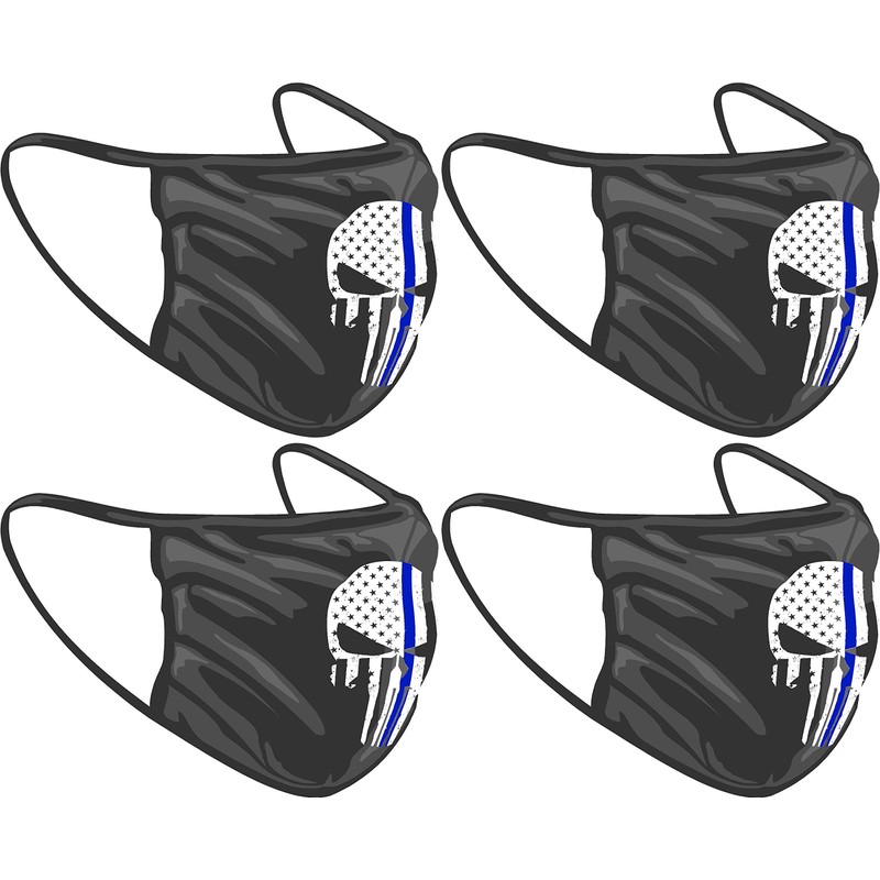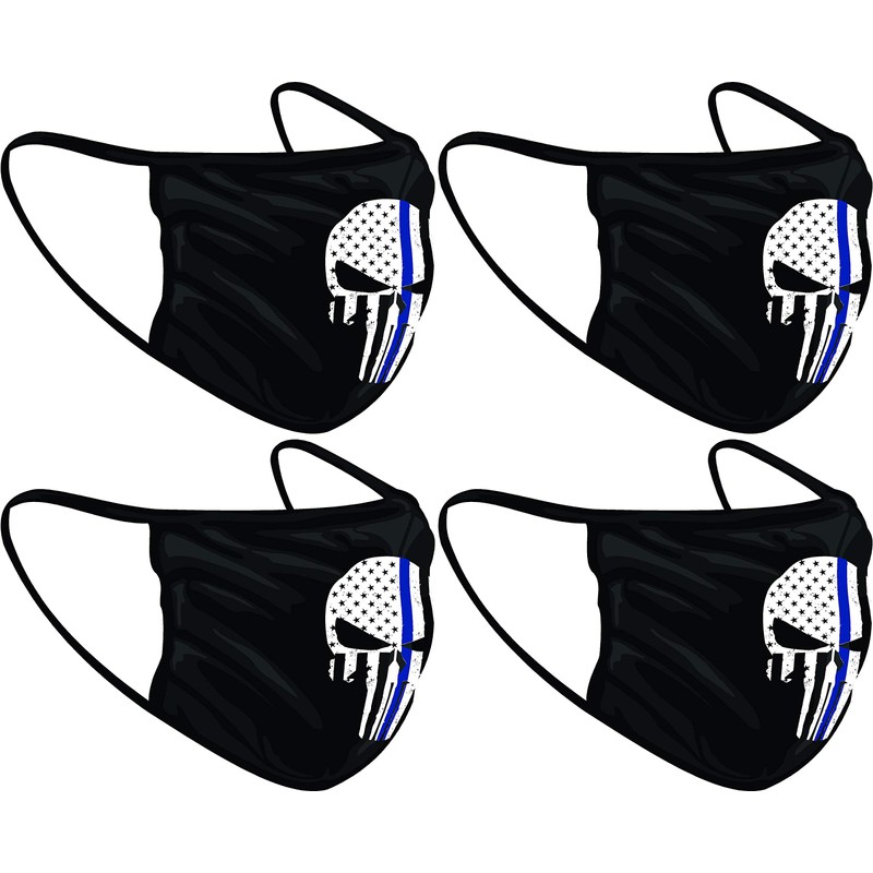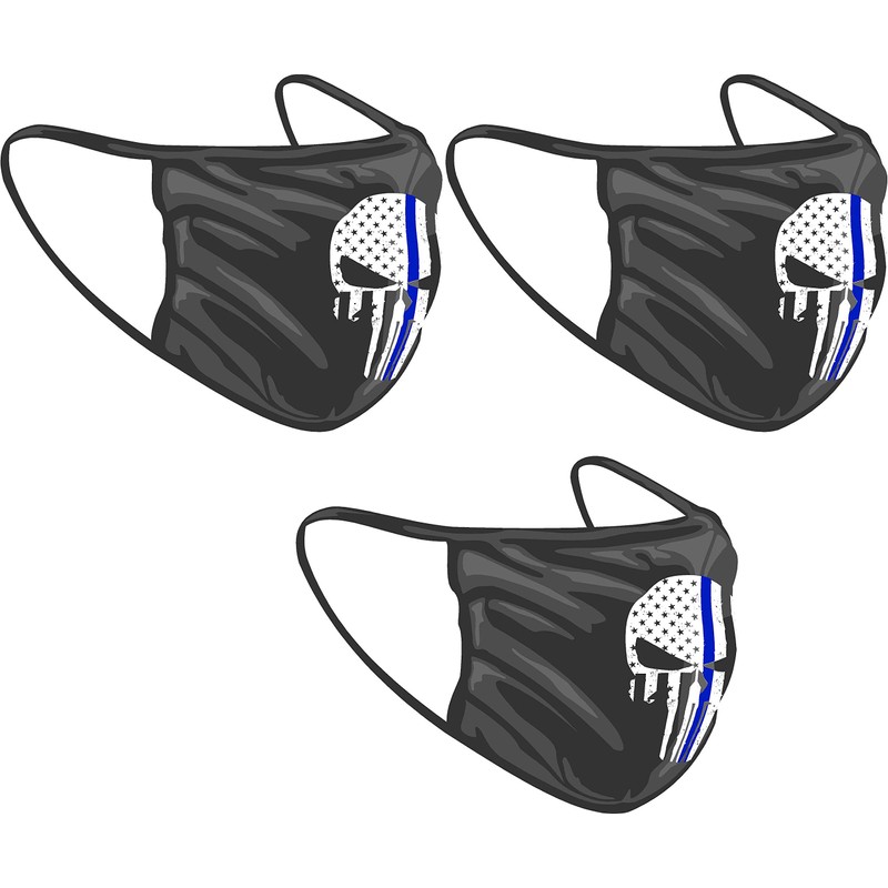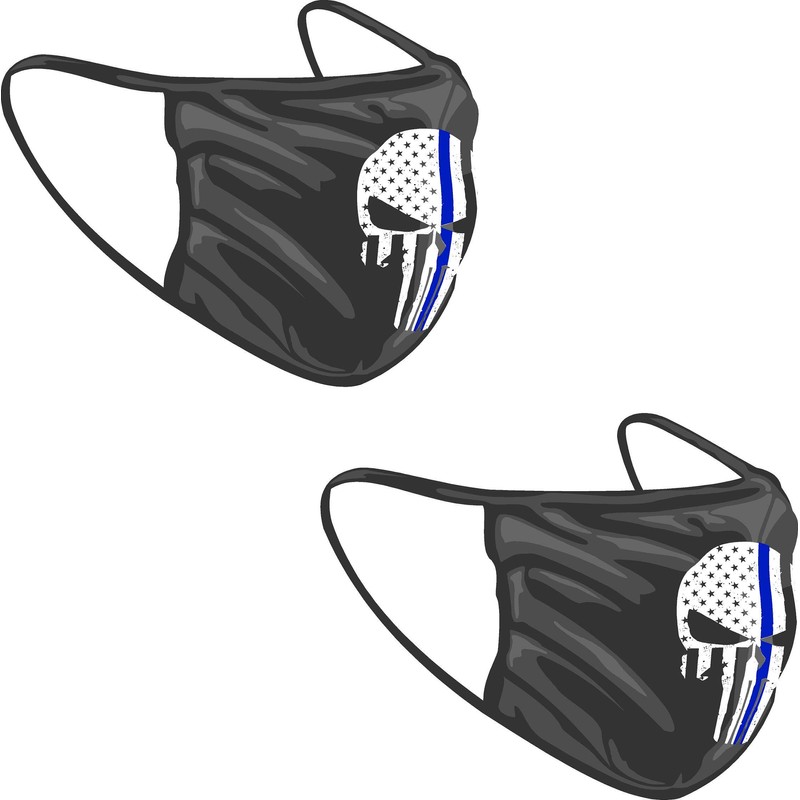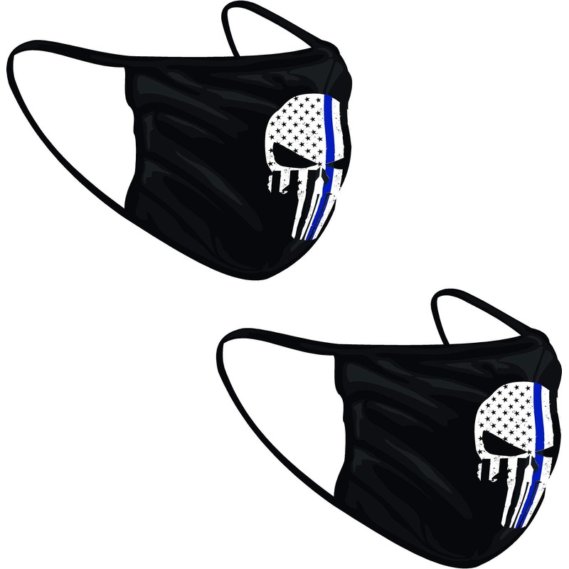 Project Thin Line Thin Blue Line Skull with Subdued American Flag Washable Reuseable Face Mask (Black, 2)