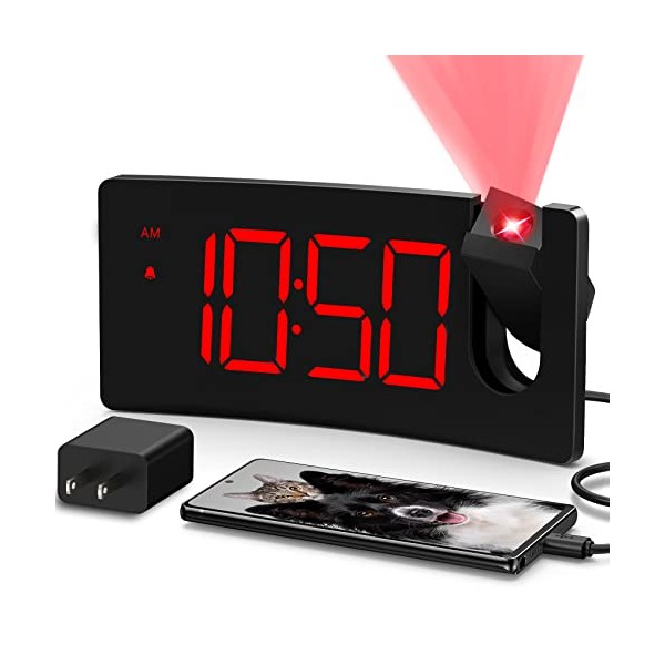• SUPER SIMPLE TO USE -- Based on customers' preferences and requirements, this projecting alarm clock for bedrooms has the functions that people use most, such as 3-level brightness, USB charge port, 12/24H format transfer and snooze function. The simple operation of this digital clock makes it perfect for all ages.