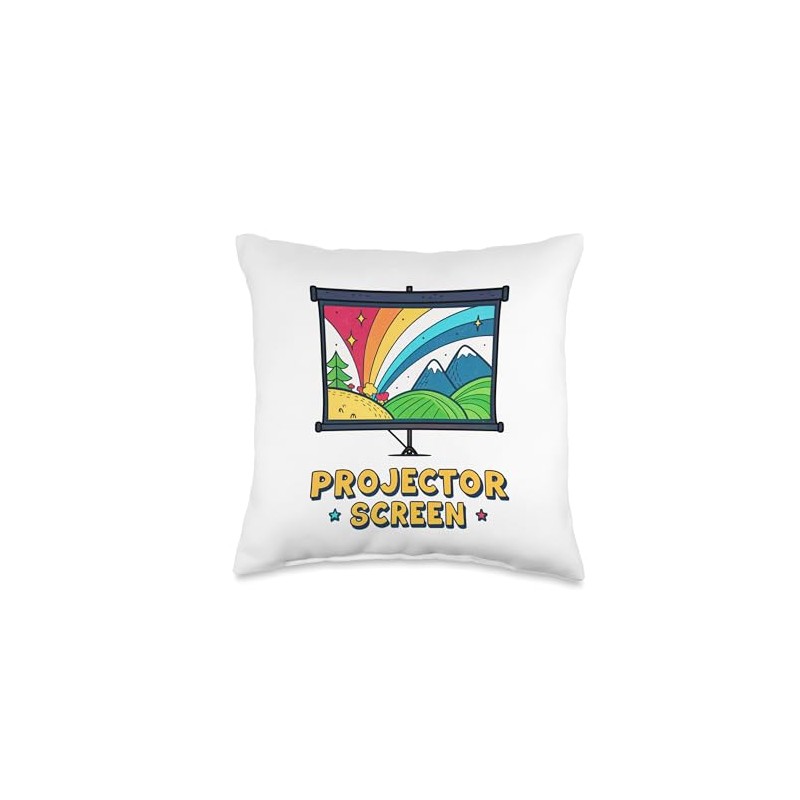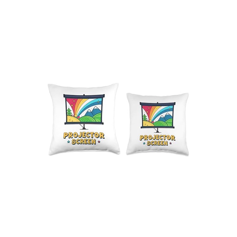 Projector Screen Colorful Landscape with a Rainbow Design Throw Pillow