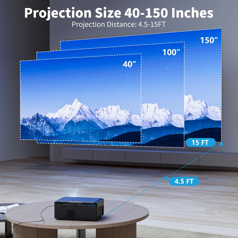 - 【 Ultra-Portable Adventure Buddy】Outdoor projector compact 7.5" body , weighing under 2 lbs. Small projector fits in any backpack—take cinema-grade adventures camping, on road trips, or business travels.