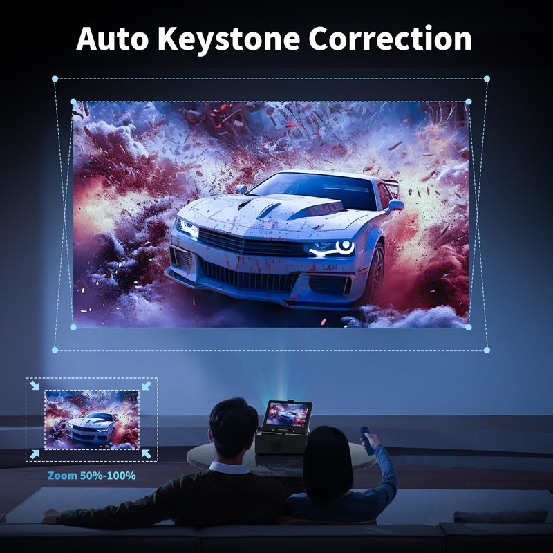 - 【Automatic Keystone Correction】This projector with wifi and bluetooth features automatic keystone correction for effortless perfect screen projection. When the bluetooth projector and your smartphone are connected to the same WiFi network, you can easily perform wireless casting by following simple steps. The smart projector enlarges your phone’s screen and sound, allowing you to better enjoy music and movies!