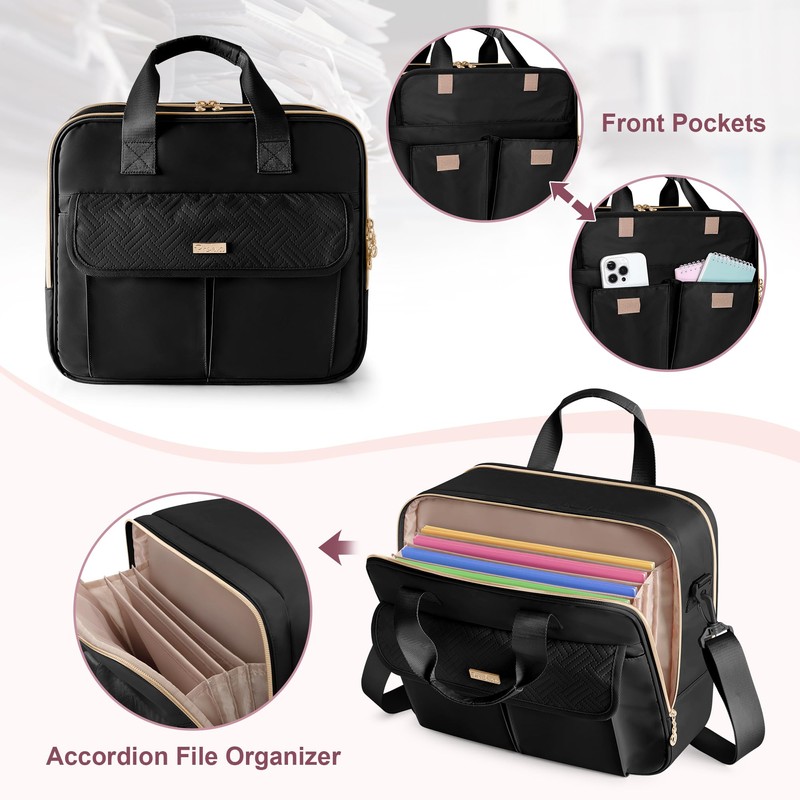 Prokva Prokva Teacher Bag with Accordion File Organizer, 15.6 Inch Laptop Briefcase for Women, Teacher, Tutor, Nurse and Processionals, Black