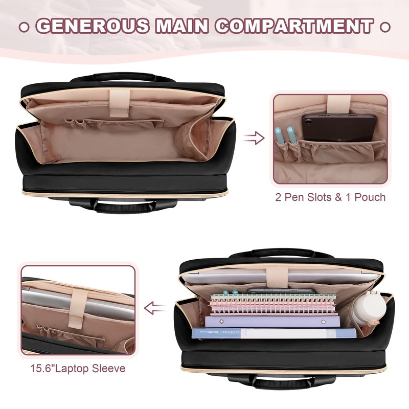 - PROFESSIONAL BRIEFCASEThe main compartment includes a padded laptop sleeve that fits up to 15.6 laptop or tablet. Thick padding and a fastener strap keep your device protected from bumps during daily commutes.