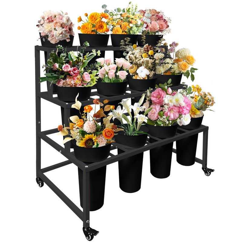 • 【Built to Last】Made from a durable metal frame, our display stand offers superior sturdiness and a high load-bearing capacity. It comes with 12 spacious flower buckets to hold water or soil, ensuring your blooms remain fresh and vibrant. The stand is also equipped with four 360-degree swivel casters, enabling you to move your flower display easily to any desired location.