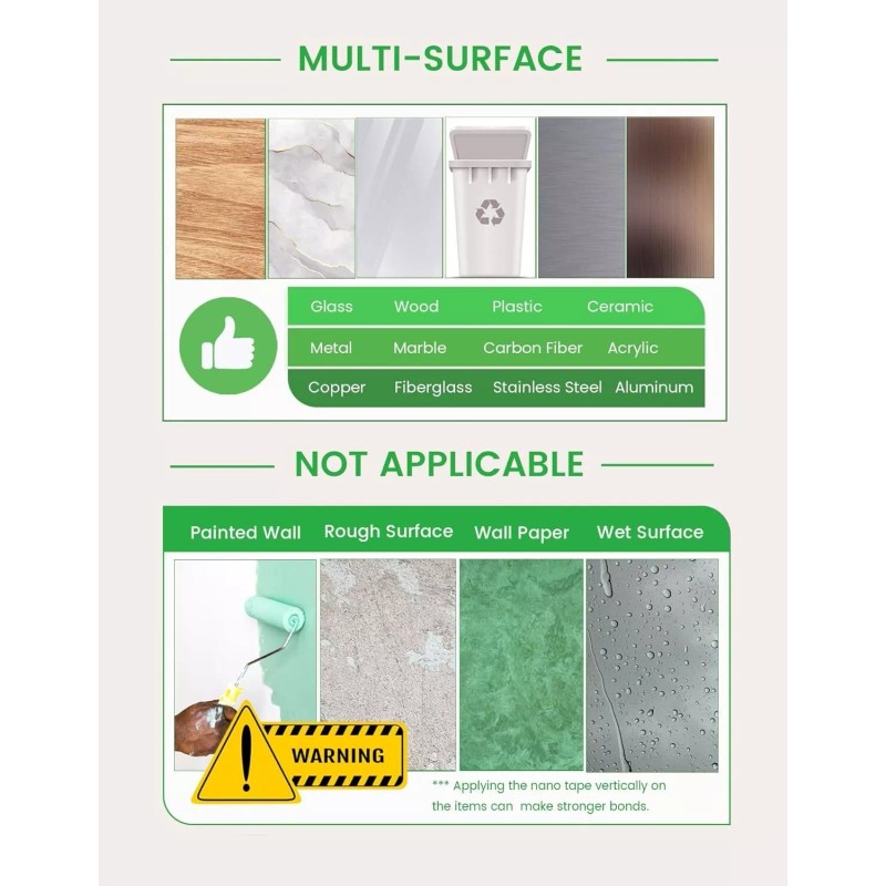 • Nano Tape Strong Adhesion: Nano tape can hold up to 2.2lb on smooth surface, so you can stick anything you want
