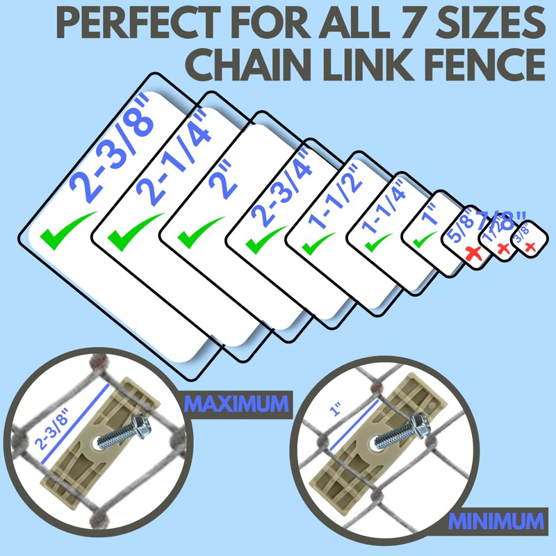 - 【Quick and Easy Installation】The chain link sign bracket features a user-friendly design for quick and easy installation, saving time and effort. Its straightforward assembly allows for efficient attachment of signs without the need for specialized tools. We recommend that you install one bracket every 2-3 ft around the perimeter of your sign.