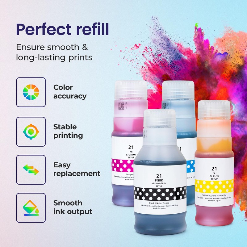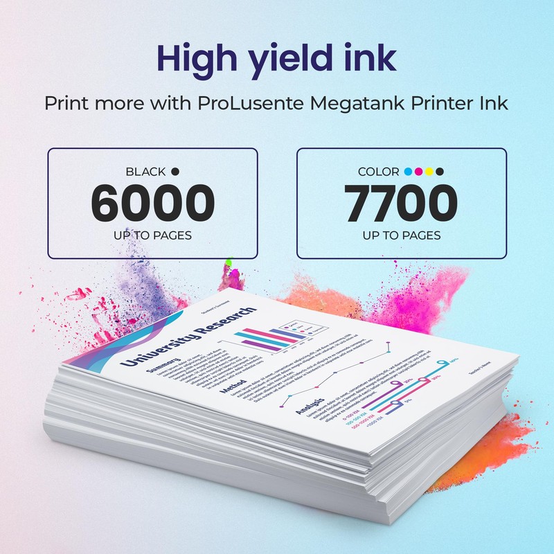 - COST-EFFECTIVE SOLUTION – The HIGH-CAPACITY DESIGN of the inkjet ink bottles significantly reduces the frequency of refills, SAVING YOU TIME AND MONEY in the long run. Whether you're printing AT HOME OR IN THE OFFICE, this efficient kit helps MINIMIZE INTERRUPTIONS and ensures CONTINUOUS PRINTING without the need for frequent ink replacements.