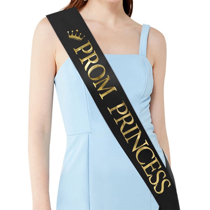 "Prom Prince" and"Prom Princess" Sashes - Graduation Party School Party Accessories, Black with Gold Print