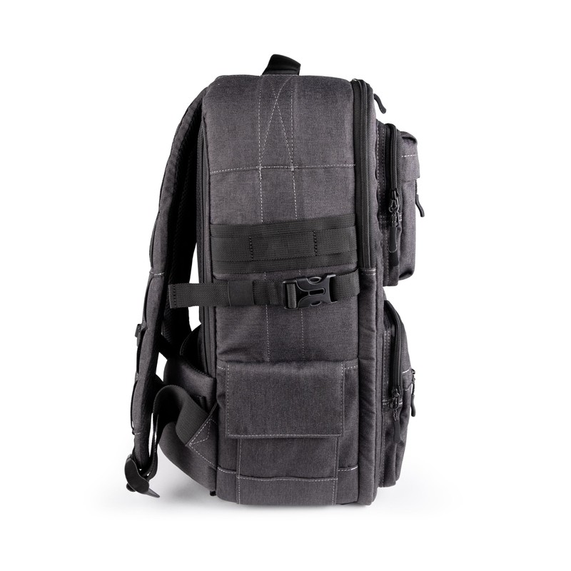 - 2 side pockets, one with expansion. Holds a tripod on the side or bottom (tripod carrier straps included). Holds a water bottle