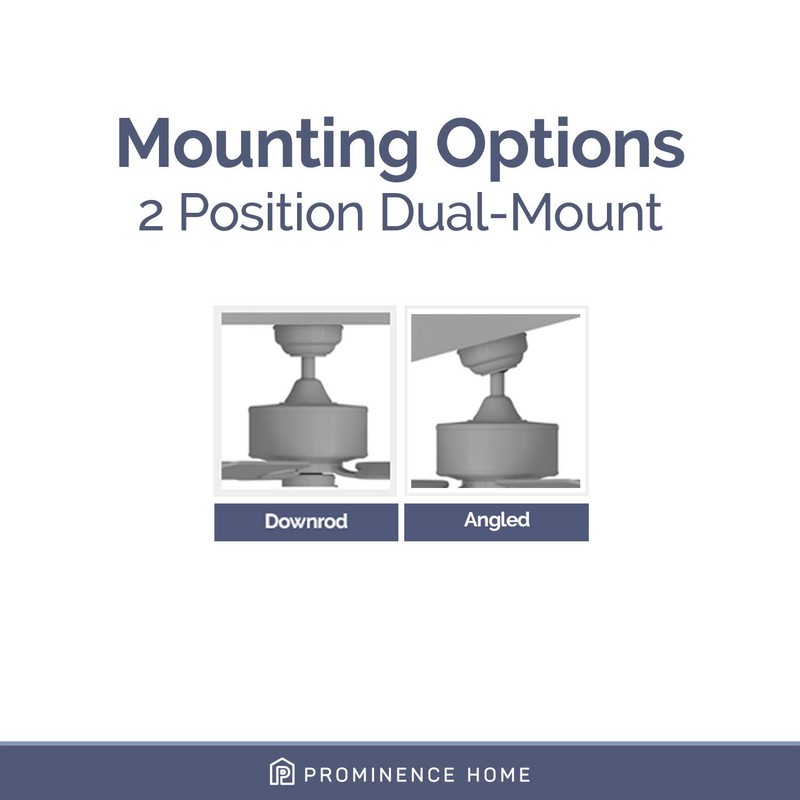 - DUAL MOUNT COMPATIBLE: This fan can be hung by the standard downrod mount, 4” downrod included, or on angled ceilings (angle bracket for angles greater than 17 degrees sold separately)