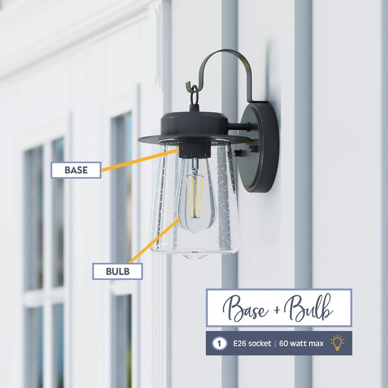 Create a warm and welcoming glow on your front porch or back patio with this outdoor wall sconce. This wet-rated coach light features lantern inspired details and clear seeded glass creating beautiful farmhouse charm and eye-catching illumination.