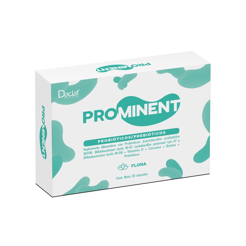 - Prominent FLORA es un suplemento alimenticio con probiótico y prebióticos.