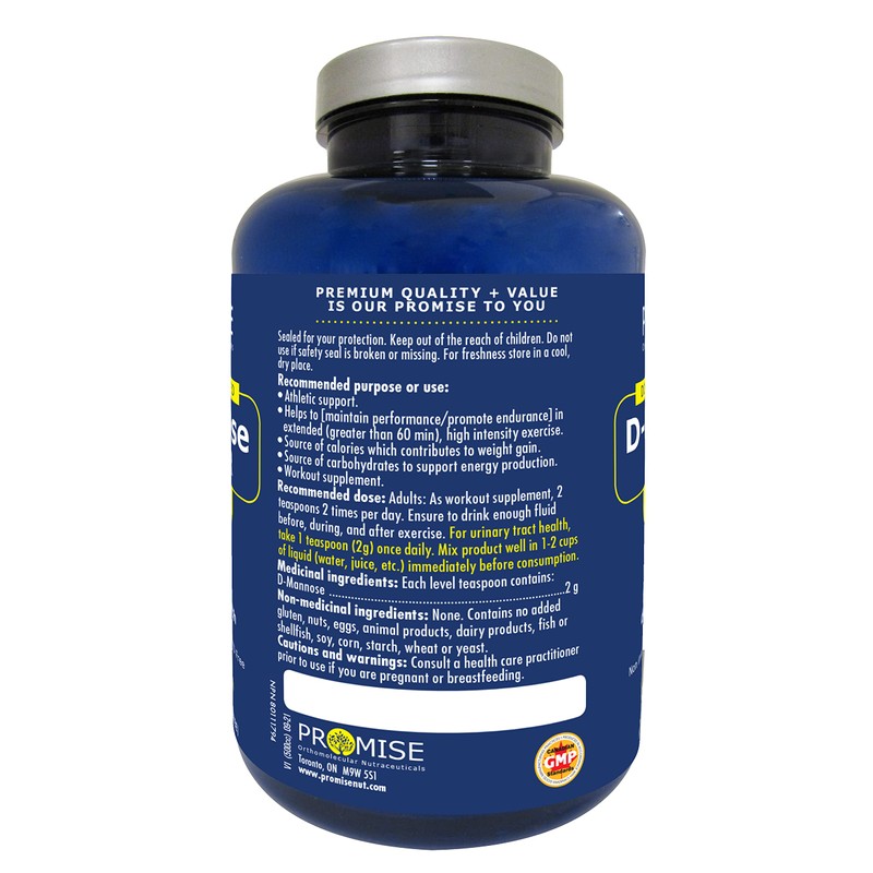 - PUREST INGREDIENTS: Promise D-Mannose is sourced only from the highest quality D-Mannose. Made in Canada. No GMO, No Chemicals, No fillers.
