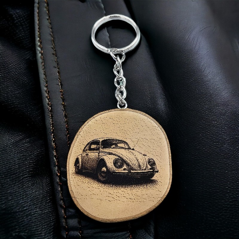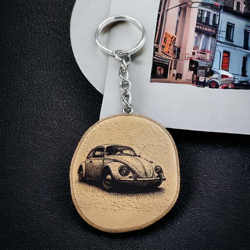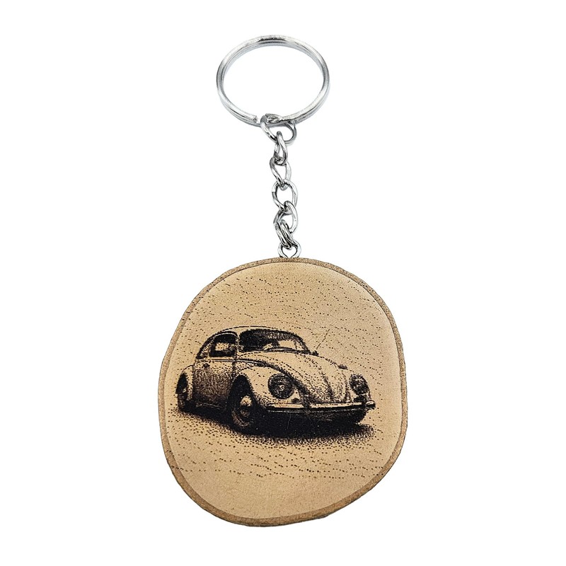 Promotech Legendary Beetle Car Handmade Laser Engraved Single Piece Wooden Keyring, natural wood, W5L5