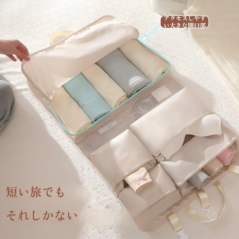 - 7 Function Modules: Storage with 7 functions such as clothes storage, shoes, toiletries, snacks, etc., can meet various storage needs for your destination, helping you organize your luggage and improve storage efficiency