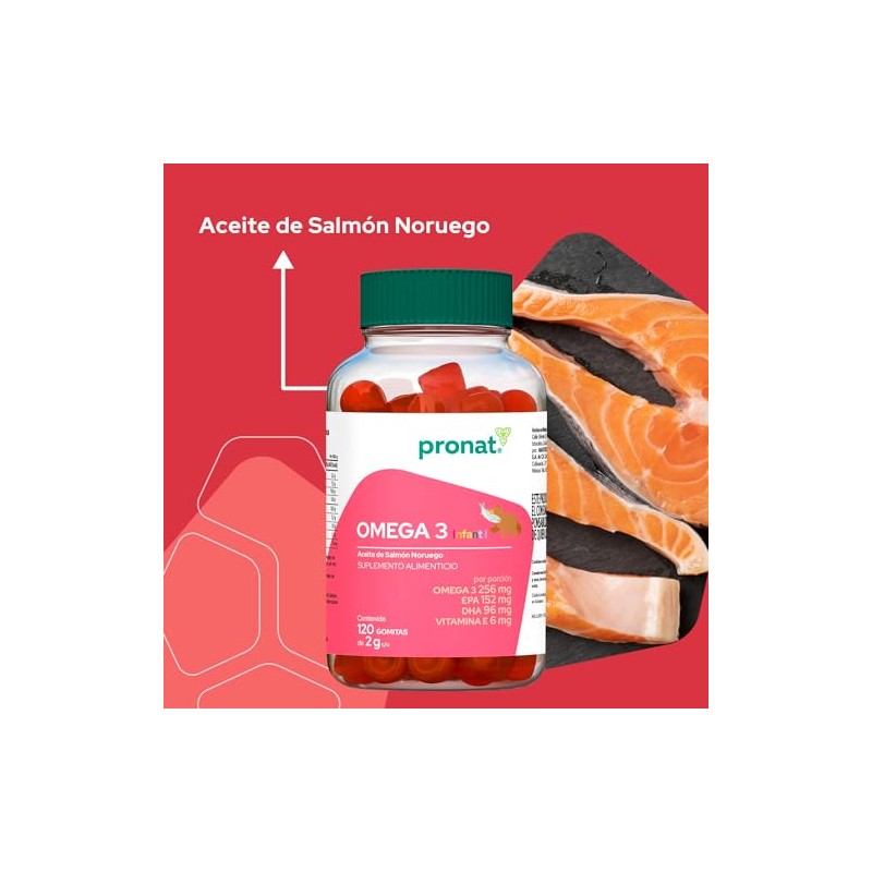 🌟 ⭐ PRONAT | Omega 3 Infantil, Suplemento Alimenticio, 120 Gomitas con 256 mg de Omega 3, 152 mg de EPA, 96 mg de DHA y Vitamina E ⭐ 🌟