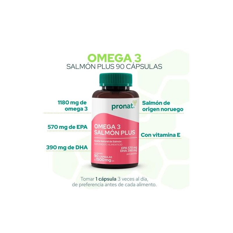 Pronat - PRONAT | Omega 3 Salmón Plus, Suplemento Alimenticio, 90 Cápsulas con 570 mg de EPA, 390 mg de DHA y Vitamina E. ✅ Diseño innovador que supera las expectativas. Construcción robusta y atención al detalle. 💝 Perfecto como regalo especial. Ideal para quienes buscan lo mejor en calidad y estilo. Producto auténtico con satisfacción total asegurada. ¡No te quedes sin el tuyo y aprovecha esta oportunidad única!