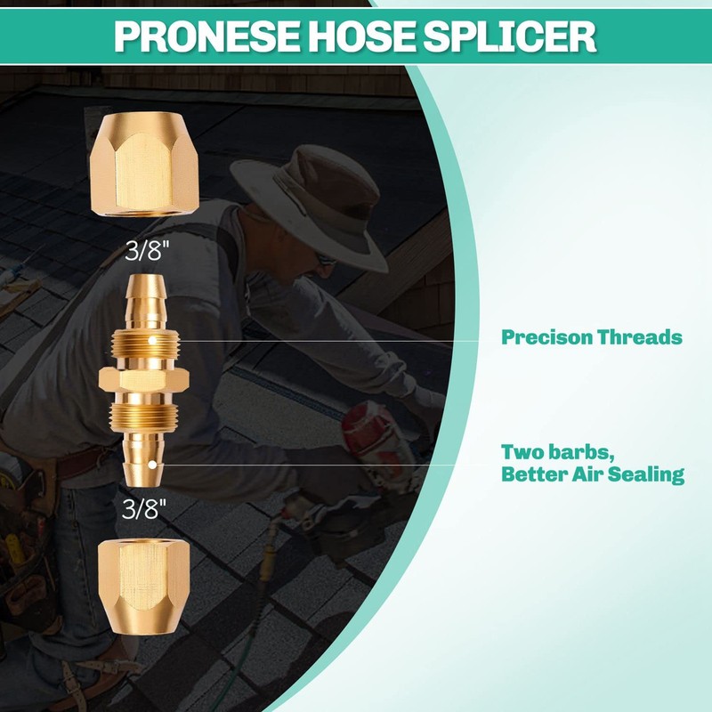 Pronese 10 Pack Soild Brass HPT Air Reusable Hose Splicer Repair Kit,Air Hose Fitting for 3/8-Inch ID Hose
