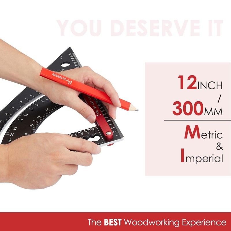 - đăVarious Applicationă: Our package includes 1 adjustable 12-inch roofing square, 2 carpenter pencils (black+red), which can meet your different needs in roofing field, wood cutting, home improvement and many other woodwork situations.