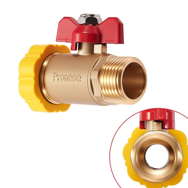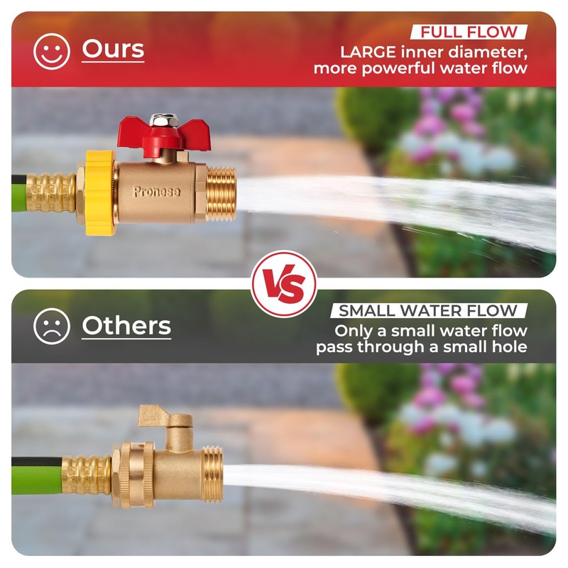Pronese Full Flow Brass 3/4''GHT High Flow Garden Hose Shut Off Valve Hose,Heavy Duty No Restricted-Flow Water Shut-Off Connector,Full Port Ball Valve Adapter