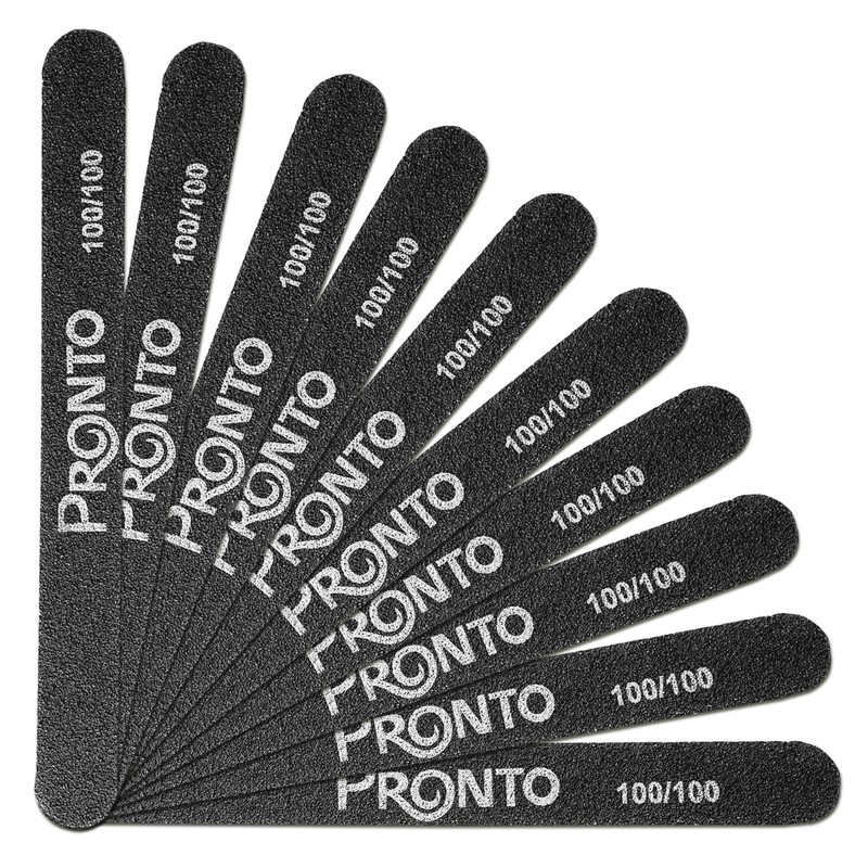 Pronto - Limas de uñas profesionales para salón de uñas, doble cara, color negro, grano 100/100 para manicura y pedicura (10 piezas)