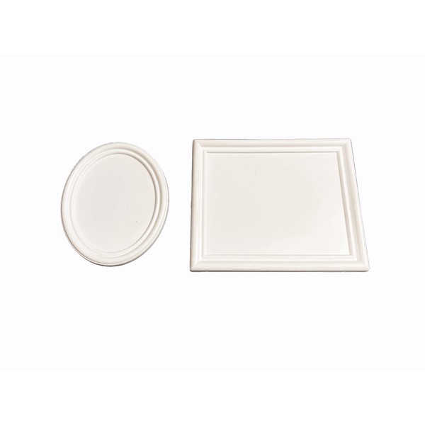- A pack of 2 WHITE plastic picture frames (one oval, one rectangular) suitable for dolls houses/dioramas, etc.