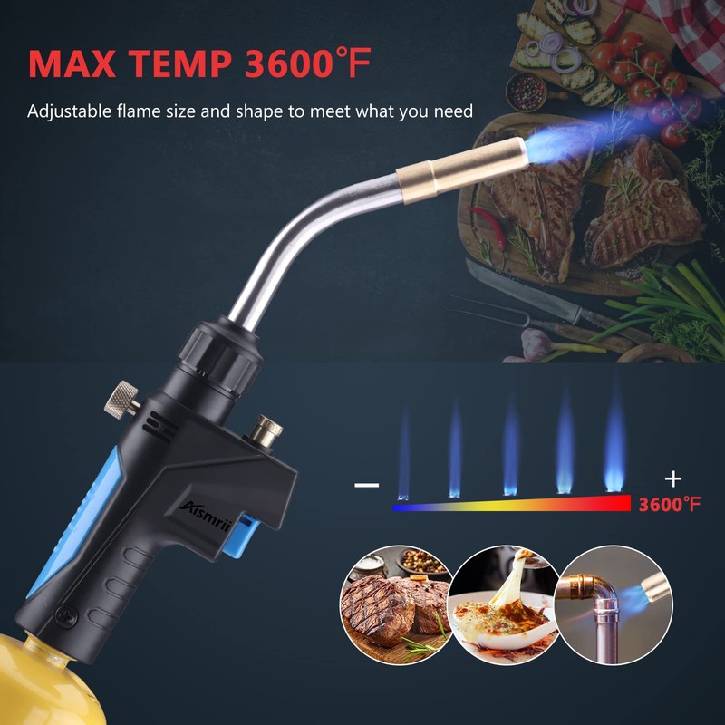 - 【Precise Performance】The brass tip cancan puts out high intensity heat and the flame more concentrate.Easily control the flame size to meet the need of different projects with the adjustable brass knob. The Propane Torch Head has a precisely designed trigger lock knob to keep the flow in continuous use.