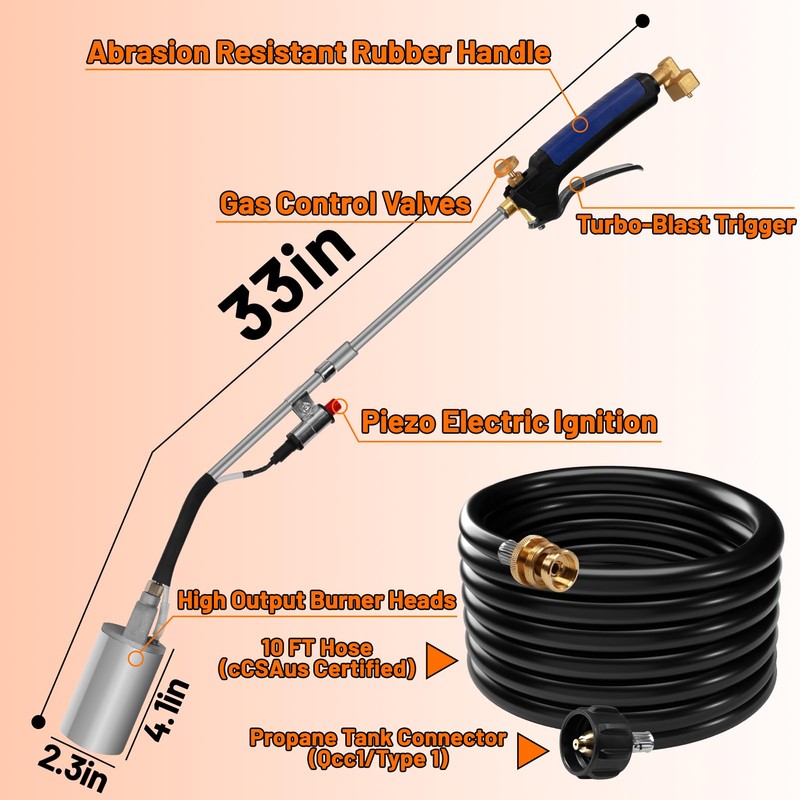 Propane Torch Weed Burner Kit,High Output,Heavy Duty Blow Torch Flamethrower with 10FT Hose for Weeding,Roof Asphalt,lce Snow,Road Marking,Charcoal