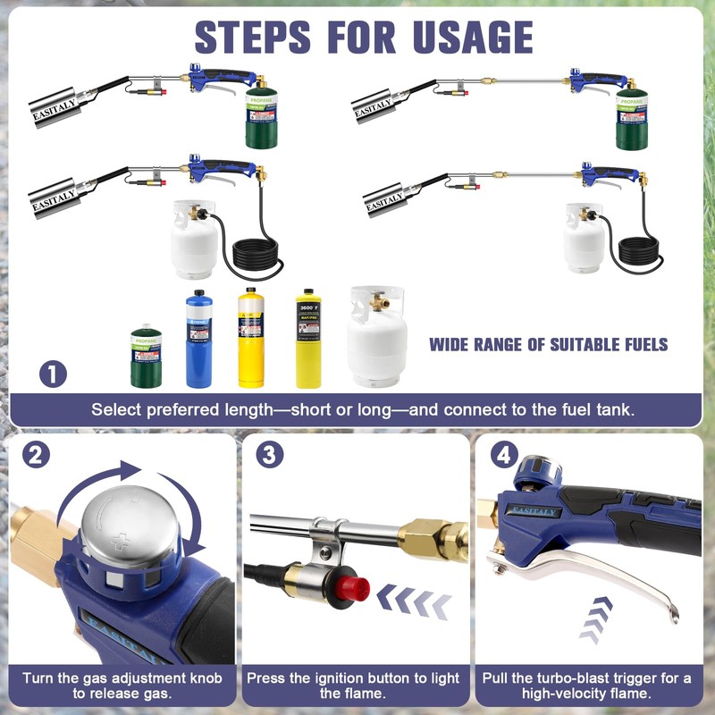 Propane Torch Weed Burner Kit,High Output 2,400,000 BTU with 12.5FT Hose,Heavy Duty Blow Torch Flamethrower with Long/Short Mode for Flame Weeding,Roofing,Ice Snow Melting,Road Marking,BBQ