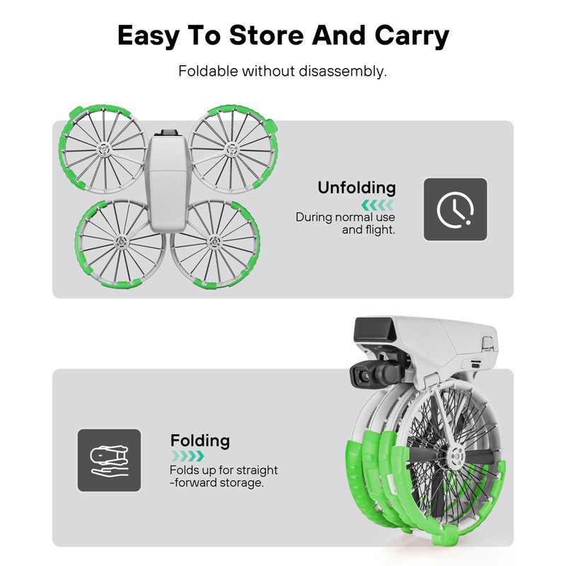 - Convenient Storage: The FLIP can be folded and stored without removing the collision avoidance ring, making it more convenient to carry