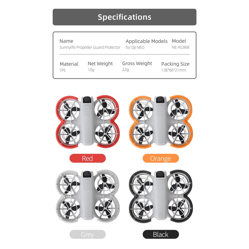 * Invest in the Propeller Guard Protector to keep your DJI Neo drone secure, durable, and extend its service life. Ideal for novice players, it offers security protection while enhancing the aesthetics of your drone.