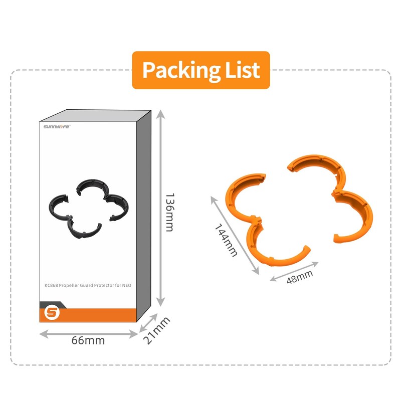 * Despite its sturdy construction, the propeller guard is lightweight and will not add any additional burden to the flight of your Neo drone. It is designed to not wobble or fall off during flight and has minimal effect on the flight time. With its high strength and good toughness, it effectively cushions impacts, providing a peaceful and hassle-free flying experience.