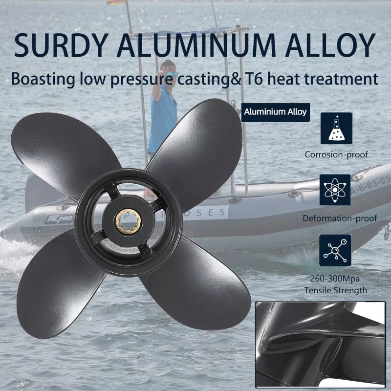 PROPELTECH 4 Blades | 9 1/4 x 11 Outboard Boat Propeller For Honda 8-20HP,8 Spline 9.25x11