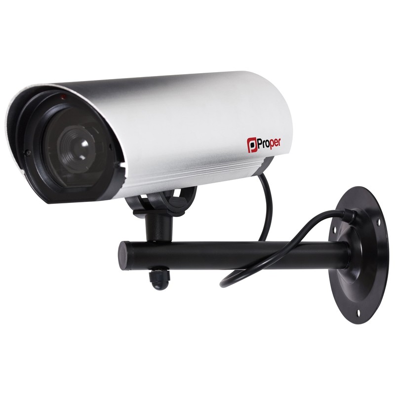 Properav Outdoor Indoor Fake Dummy Imitation Dummy CCTV Security Camera, Waterproof Aluminium with Blinking Flashing Light Bullet Shape Silver