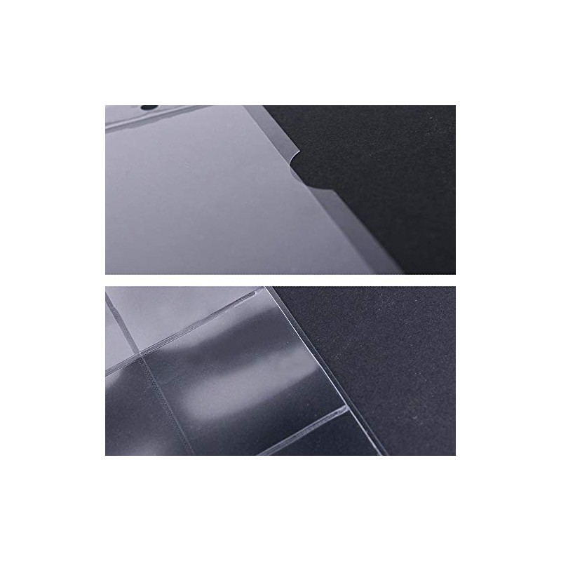 - They are transparent on both sides. White cardboard interleaves provide visual separation.