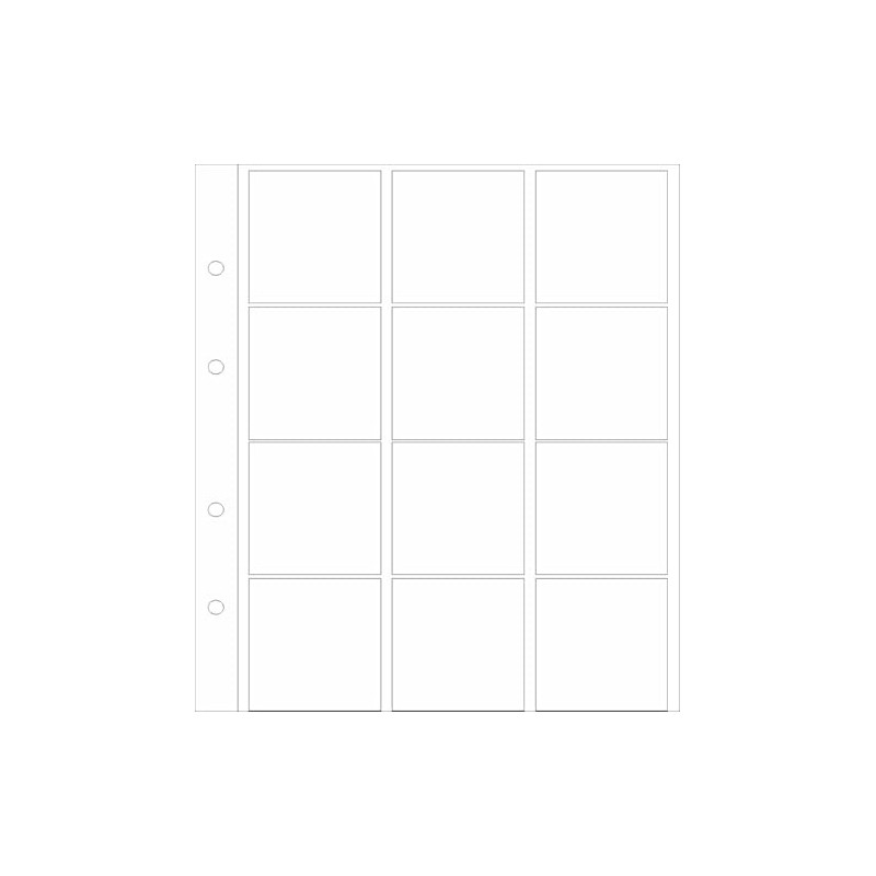 - Set of 5, each with 12 compartments for coin holders (50 x 50 mm). Sheet size: 188 x 212 mm, plasticizer-free, with 5 white cardboard interleaves.