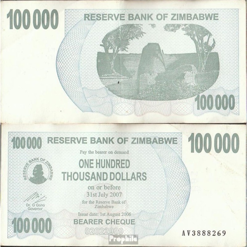 Prophila Collection Banknote Zimbabwe Pick-Nr: 48b Used (III) 2006 100,000 Dollars (Banknotes for Collectors - No Means of Payment) Landscapes