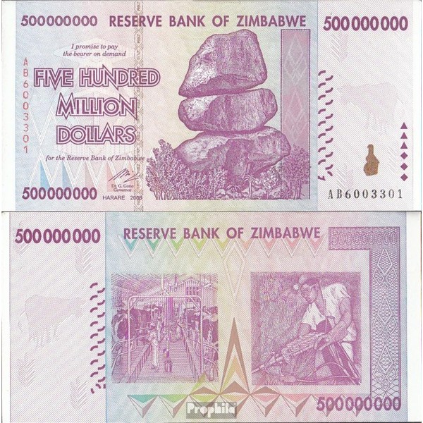 Prophila Collection Banknote Zimbabwe Pick-Nr: 82 UNC 2008 500 Million Dollars (Banknotes for Collectors - No Means of Payment) Other Mammals (Monkeys/Dinos/Elephants …)