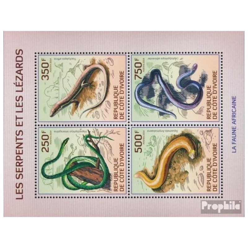 Prophila Collection Elfenbeinküste 1529-1532A Kleinbogen (kompl.Ausg.) postfrisch ** MNH 2014 Reptillien (Briefmarken für Sammler) Amphibien/Reptilien/Saurier
