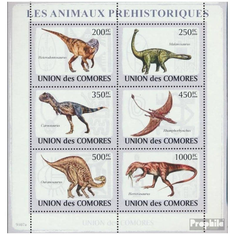 Prophila Collection Komoren 2170-2175 Miniature Sheet (Complete Edition) 2009 Dinosaur (Stamps for Collectors) Amphibians / Reptiles / Saurs
