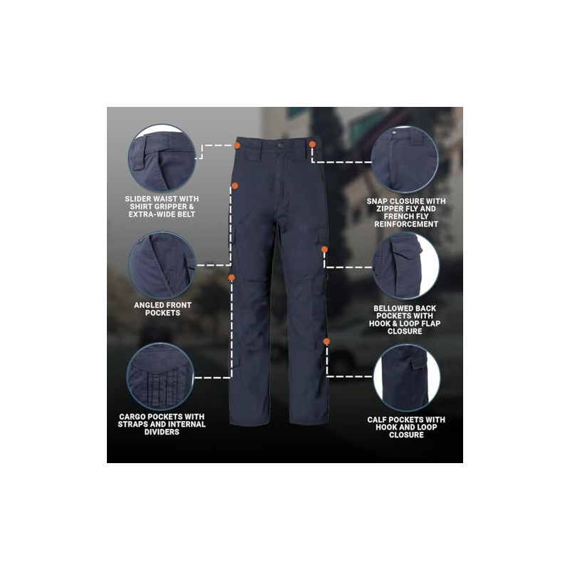 - SECURE FIT: Pant closes with a spring loaded snap that won't stick, a French Fly reinforcement back up button, and a zipper fly to ensure security while working an active shift.