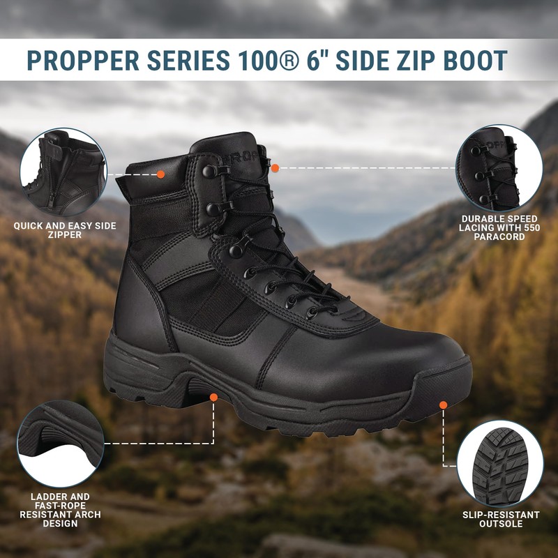 - PROFESSIONAL: Crafted with full grain polishable leather, 1000 Denier Nylon, and reinforced with triple row stitching, The Propper Series 100 line of boots is sure to look and perform like new after seasons of wear.