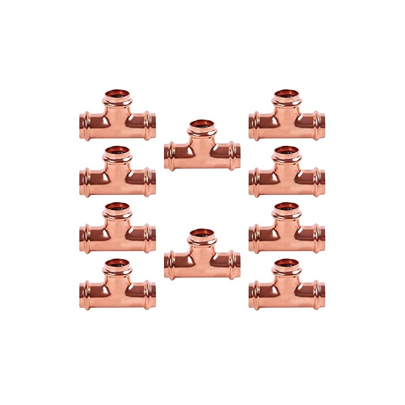 - 【PROPRESS COPPER TEE】- 1 inch copper tee available in 10 pcs packwith3-way tee fitting, having no lead and this copper press tee connects 1" (side), 1" (side) and 3/4" (top/middle) copper pipes together. Allows installers to join wet connections, making it the fastest solution for maintenance and repair