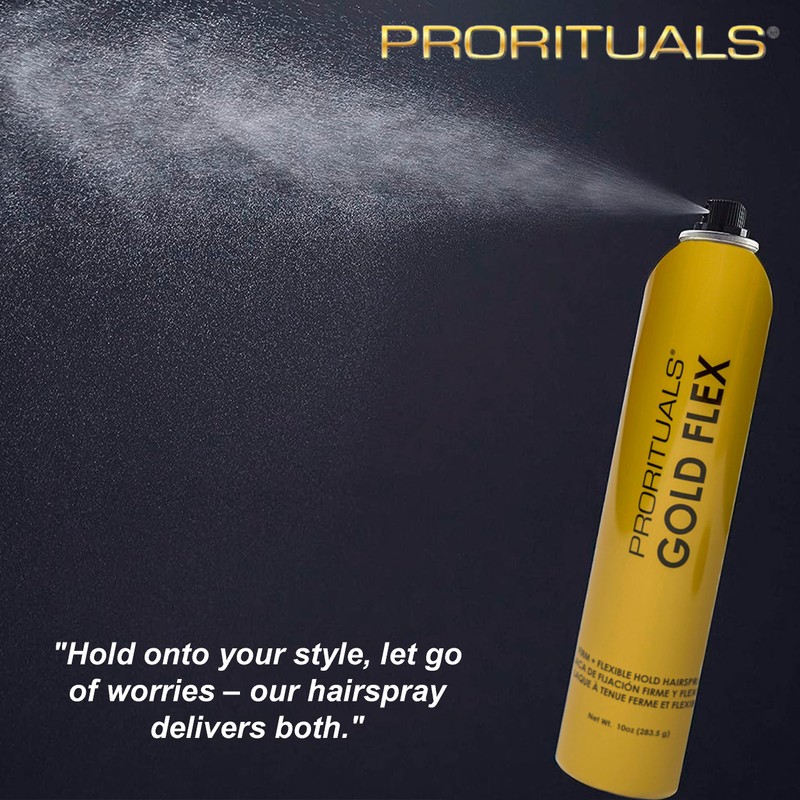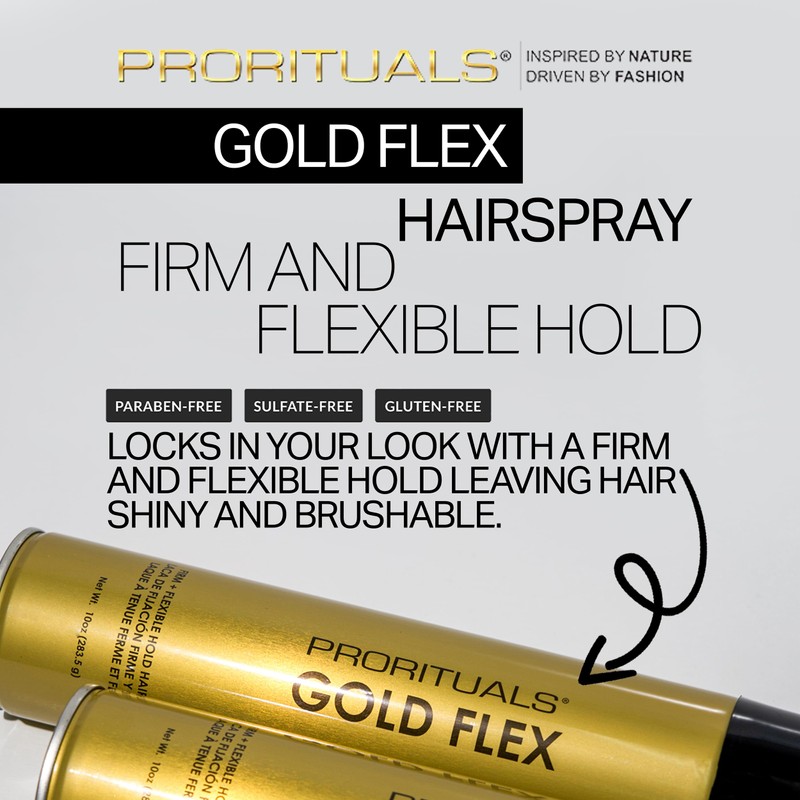 Prorituals Hairspray Flexible Hold Gold Flex, Lightweight Hairspray for Volume, Hold & Anti Frizz - All Day Hold with Flexible Hairspray For Curly Hair, 10 Oz