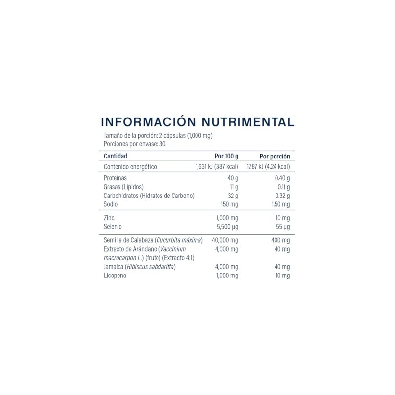 Pros Men Suplemento Alimenticio con Semilla de Calabaza, Arndano, Zinc, Selenio y Licopeno 60 Cpsulas