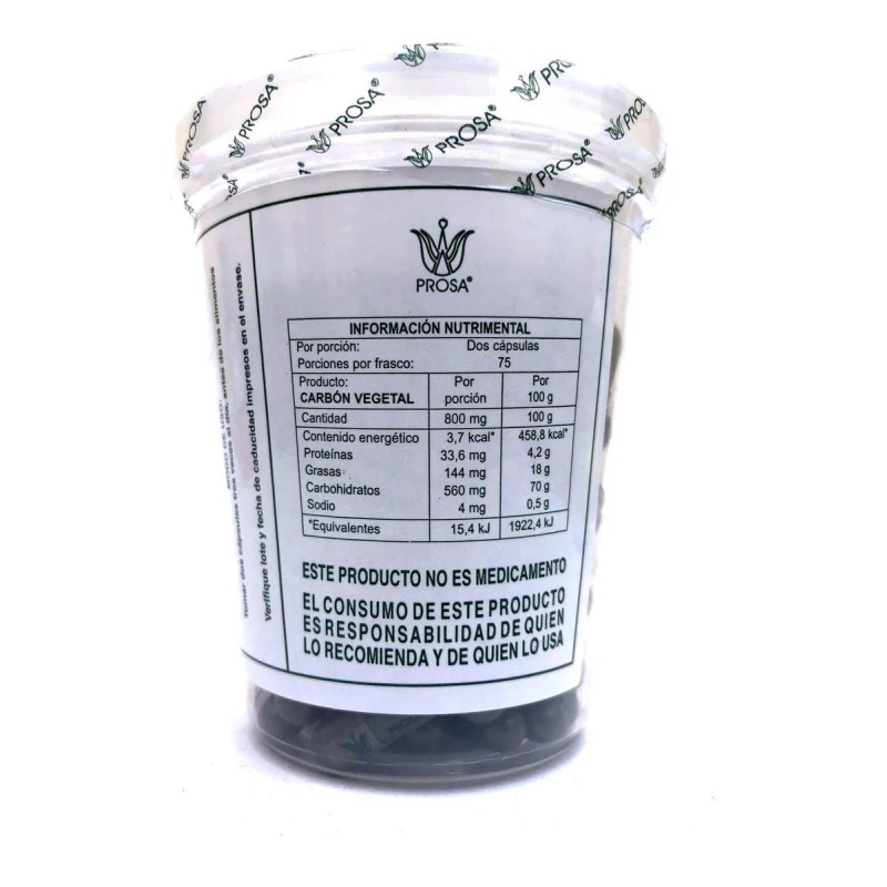 Prosa Naturales Carbón Vegetal Activado 150 Cápsulas De 400 Mg. Sin sabor